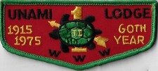 OA Unami Lodge 1 TI 1915-1975 60th Year Flap GRN Bdr. Cradle of Liberty, PA [X-9 |