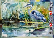 Blue Heron in Wetlands 5"x7" Print on Matte Paper | Watercolor Wildlife Art