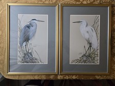 2 Art Lamay Signed Prints Great Blue Heron And Great White Heron 20"x15"