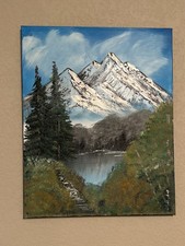 Bob Ross style original Winter Snow mountain landscape oil painting 16x20in